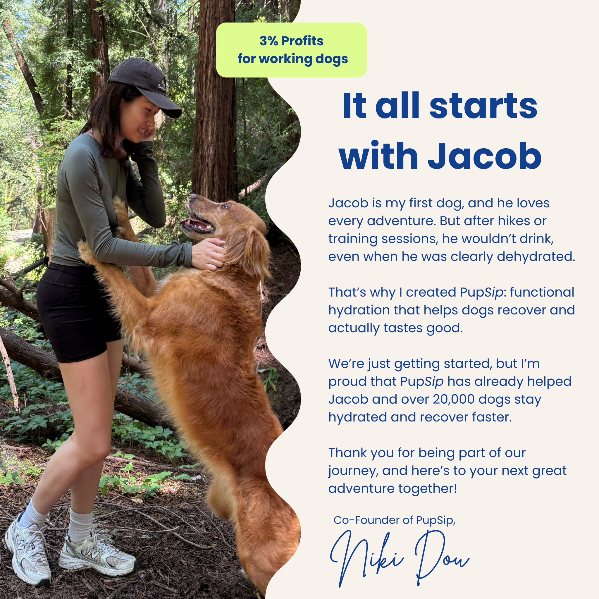 We only move forward with flavors dogs genuinely enjoy. PupSip is tested by pups, including Jacob to make sure it’s something they’ll drink willingly, happily, and consistently. If dogs don’t love it, we won’t put it in your hands.